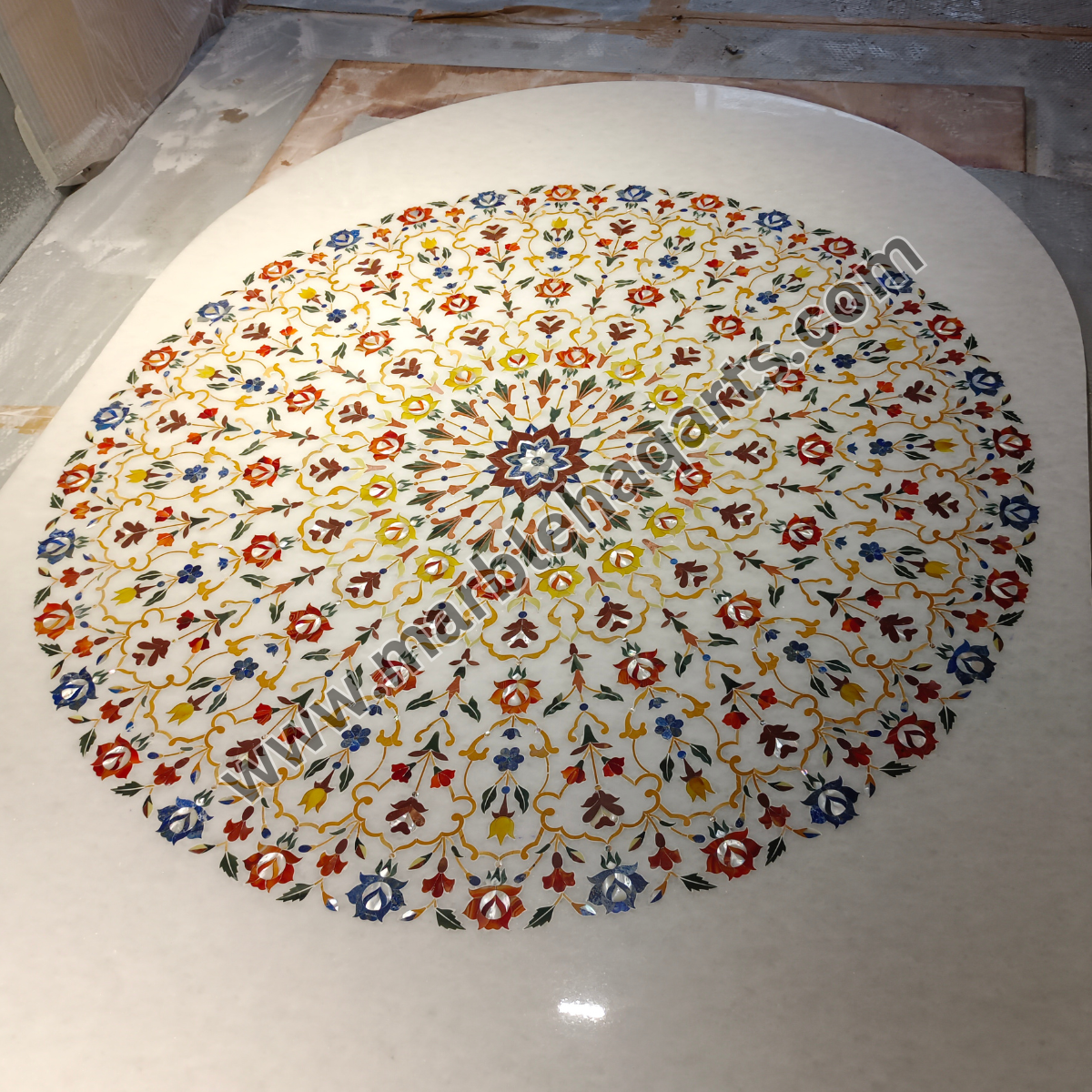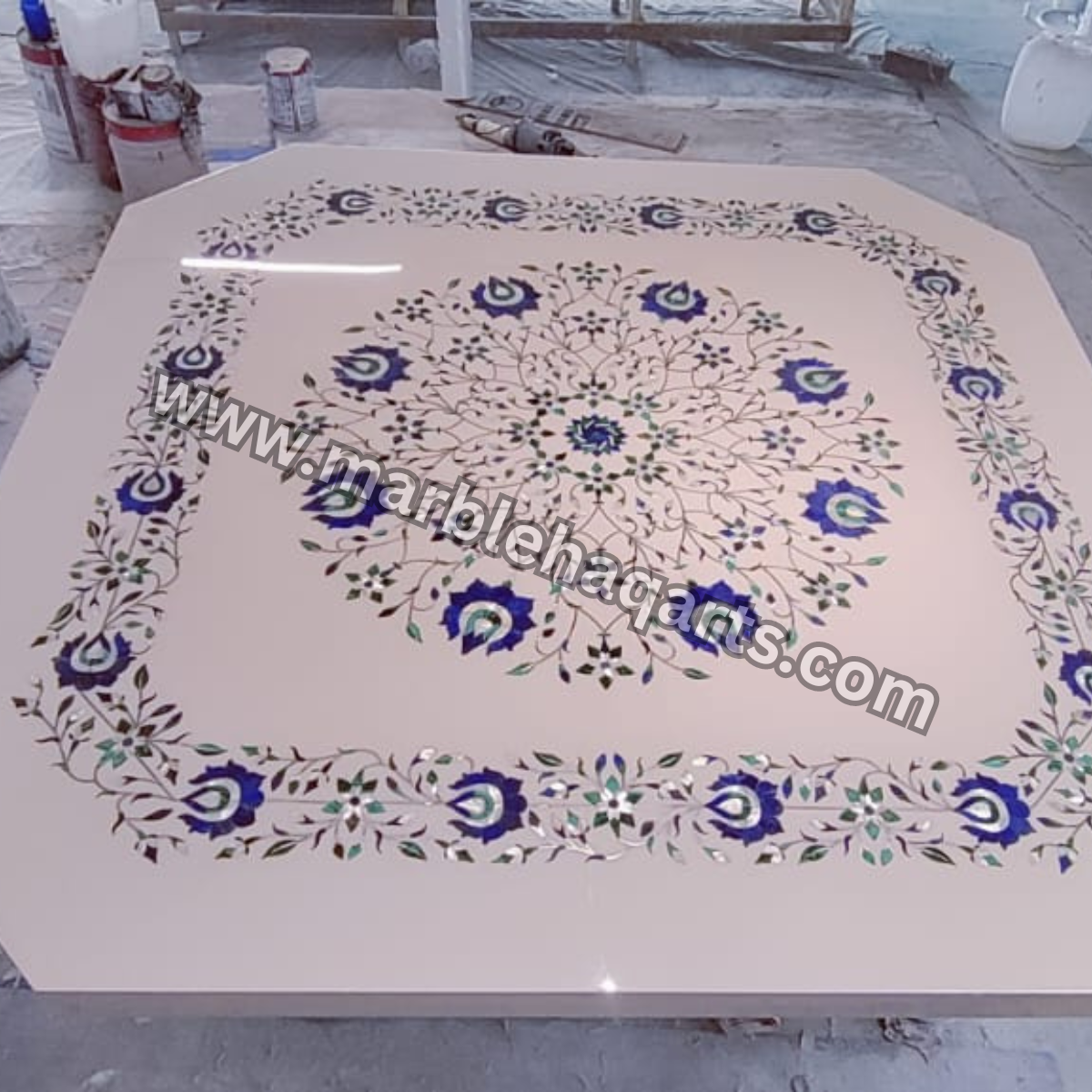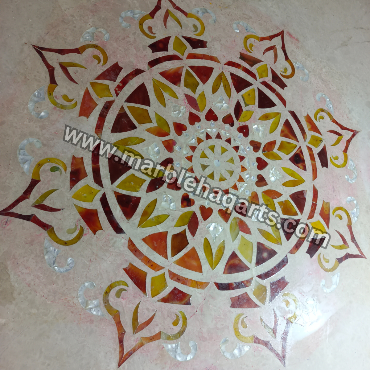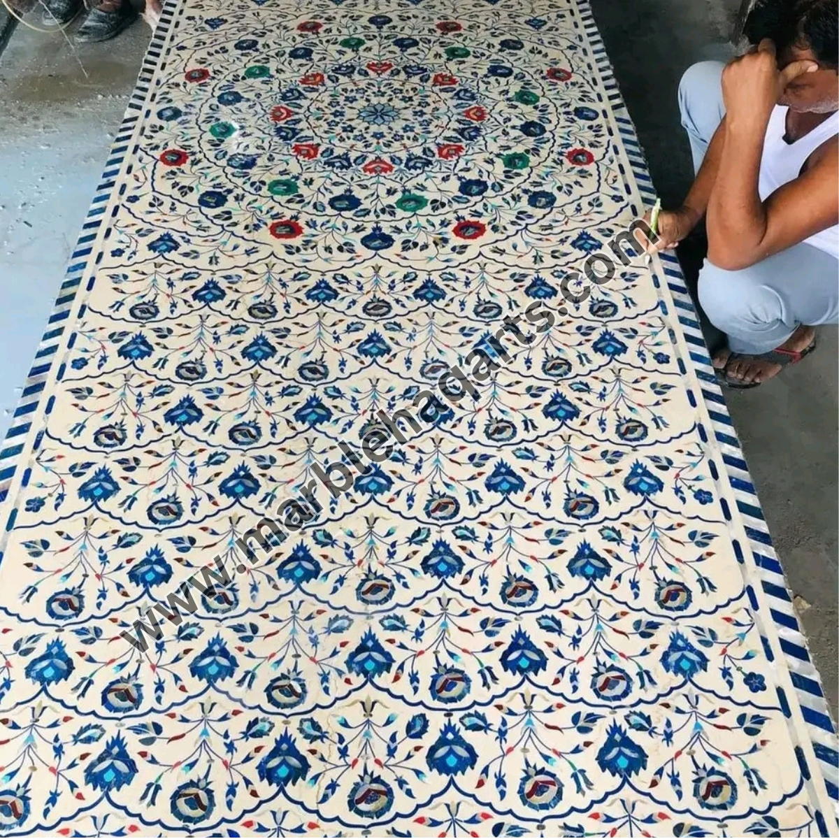 Marblehaqarts provides the best marble inlay flooring services from Agra and serve their inlay services in India as well as all over the world mainly in UAE on almost every type of marble flooring like Italian marble, precious stones, semi-precious stones, Indian stones, marble inlay border designs on flooring, wooden inlay work on flooring, central hall inlay design etc. The offered best marble flooring is available in very attractive and mesmerizing designs and colours. We get the marble flooring made by the best grade marble material and by very skilled professionals. Further, our quality assurance staff ensures that the finalized marble flooring is examined on several quality parameters. Our marble flooring designs are well known for their mesmerizing look, feel and is offered at a quite reasonable price. We have the largest collection of decorative marble inlay designs which is hard to resist simply because of the unique and attractive designs that are carved on marvellous stones. They are available in various sizes and one can place the order as per their requirement. For Inlay flooring work we use high-quality cutting machines and very experienced inlay workers. This marble inlay work can be used as inlay table tops, marble inlay borders, marble inlay on the floor, inlay medallions, marble inlay dining tables, etc. Explore the collection of decorative marble inlay work in centre floorings. These inlay designs are available in various sizes and shapes and one can place the order as per their requirement. Earlier inlay flooring was only used in palaces as they were treated as luxurious decoration for royal families only, but nowadays it is commonly used as an architectural part. Inlay flooring patterns give a unique and rich look to your homes, offices, apartments, hotels and malls.